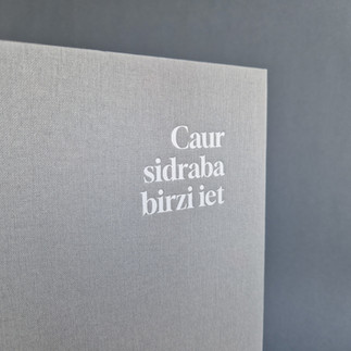 Grāmatas nosaukums "Caur sidraba birzi iet" un dizaina elementi uz vāka iespiesti sietspiedes tehnikā, kas ļauj panākt elegantu baltas krāsas uzdruku uz pelēkā vāka fona.